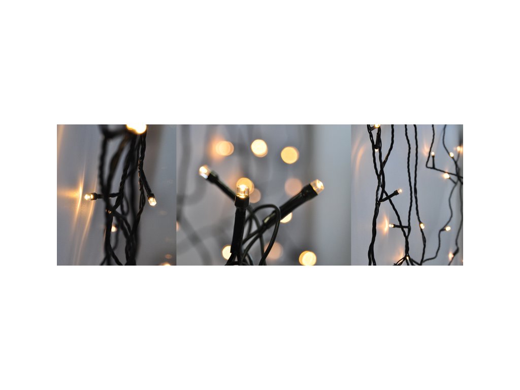 LED venkovní vánoční řetěz, 50 LED, 5m, přívod 3m, 8 funkcí, časovač, IP44, teplá bílá