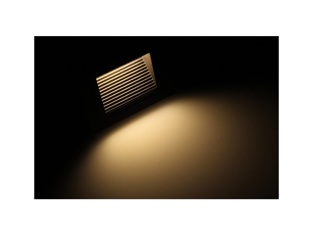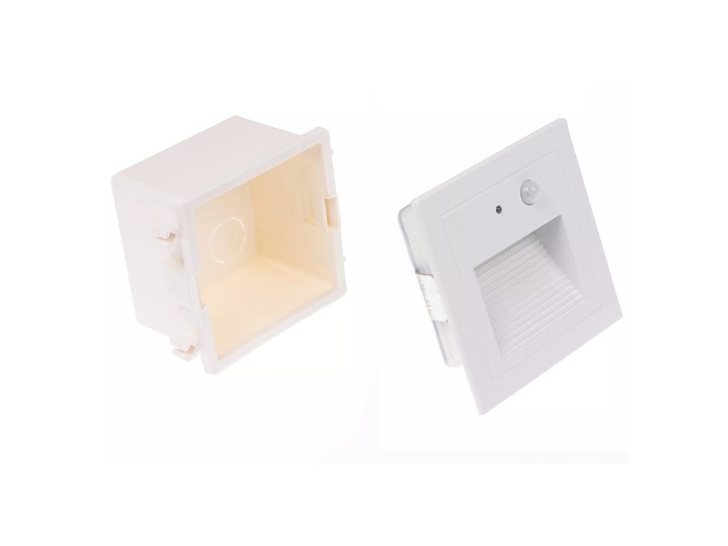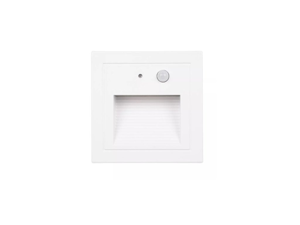 LED svítidlo vestavné na 230V s PIR pohybovým čidlem. Nejčastěji se používá jako orientační osvětlení například ke schodům nebo do chodeb. Čidlo při pohybu sepne svítidlo na cca 35 vteřin, pokud je intenzita světla v okolo pod 5 luxů. Maximální dosah čidla jsou 3 metry.Svítidlo je rozložitelné na 2 části. Zadní část lze zabudovat na místo určení, přední část se poté do zadní části nasune. Balení obsahuje plastovou krabičku pro zabudování a svítidlo. Svítidlo obsahuje nevyměnitelný zdroj světla.