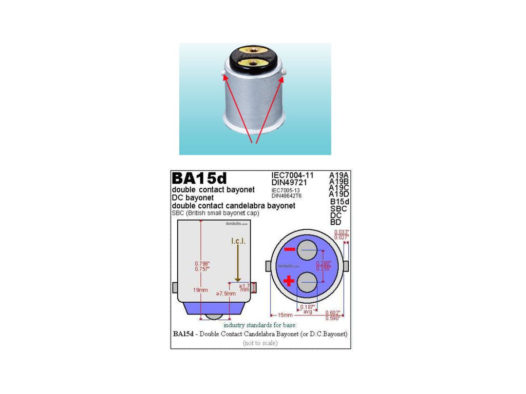 - žárovka je jednovláknová se speciálním zapojením plus a mínus na spodních kontaktech