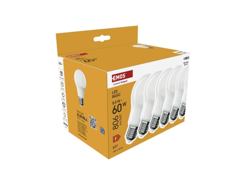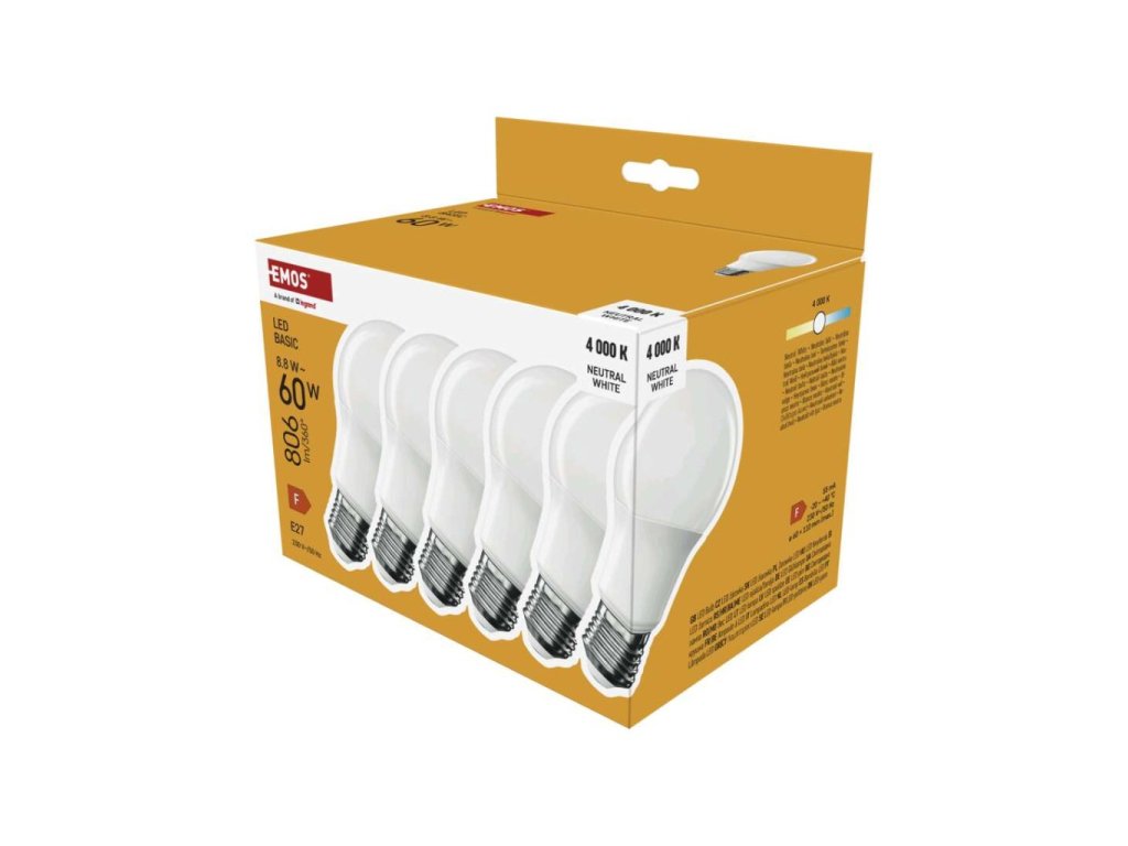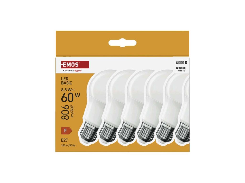 LED žárovka 6ks Basic A60 / E27 / 8,8 W (60 W) / 806 lm / neutrální bílá