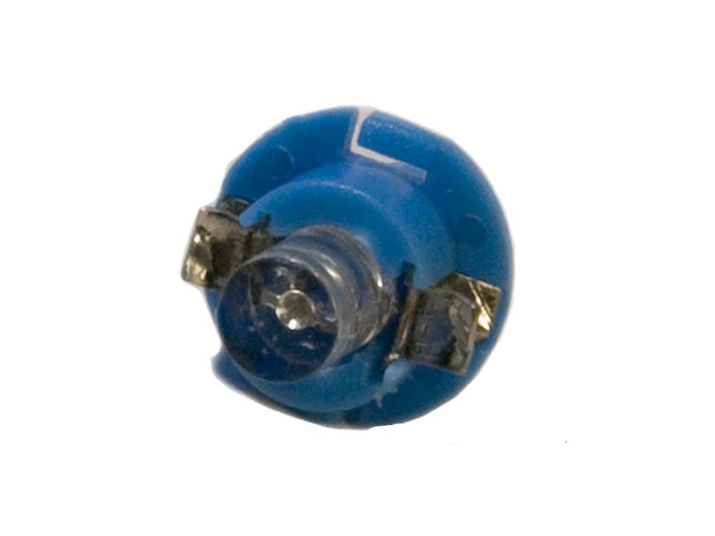 LED žárovka B8,5d 12V modrá rozptylka 140°. Žárovka známá pod označením patice B8.5d, B8.7d, R5, BAX10d 1,2W 2W W1,2W W2W Žárovka je tvořena jednou 5mm led s rozptylem světla 140°. Proud 20mA při příkonu 0,24W. Žárovka se používá v palubových přístrojích v automobilech všech značek.Doplňkové parametry