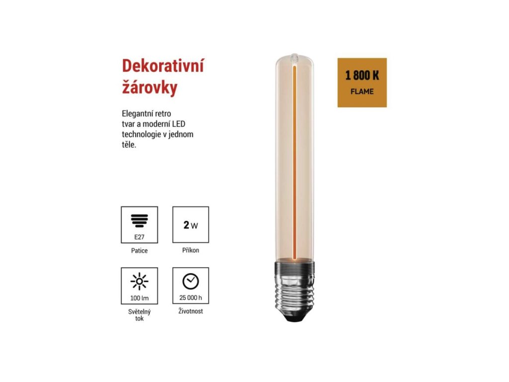 LED žárovka DECO T30/ E27 / 2 W (11 W) / 100 lm / flame