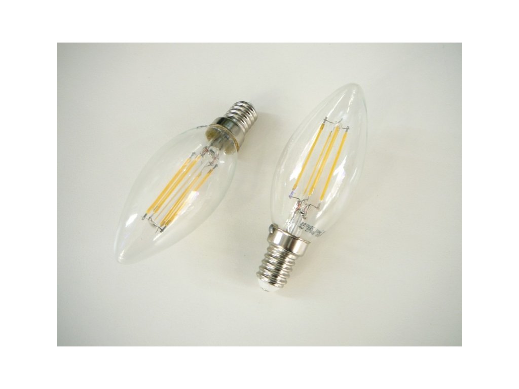 LED úsporná žárovka s FILAMENT COB Sapphire čipy na 230V se závitem E14, která nahrazuje klasickou žárovku. Vhodné do lampiček, lustrů,koupelen a do jiných míst, kde chcete ušetřit a při tom svítit. LED čip FILAMENT Sapphire má safírovou základnu (má kovový vzhled) a má oproti čipu Ceramic, který má keramickou základnu a je levnější, (má bílý vzhled) lepší chlazení, účinnost, životnost a světelný tok. Existují také základny z bronzu a skla, ty jsou používány ve velmi levných FILAMENT žárovkách, tyto čipy se velmi špatně chladí a mají velmi krátkou životnost.Specifikace LED žárovky