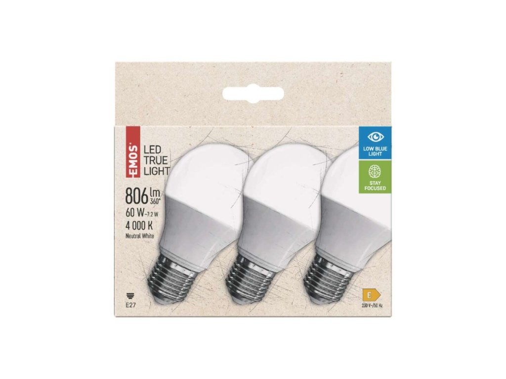 LED žárovka True Light 7,2W E27 neutrální bílá 3ks