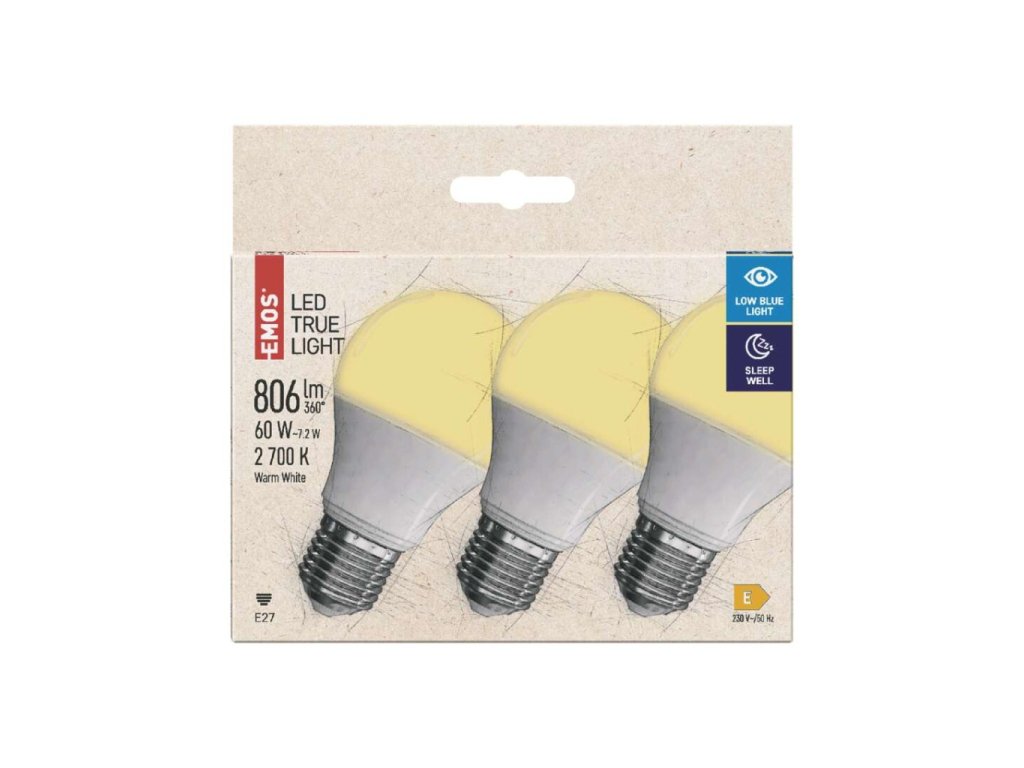 LED žárovka True Light 7,2W E27 teplá bílá 3ks