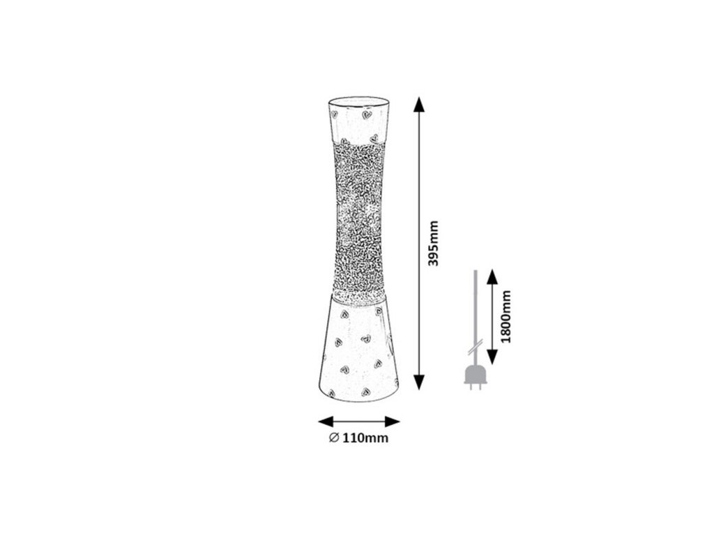 Štíhlé dekorativní svítidlo Minka bude krásným doplňkem k zařízení obývacího pokoje, ložnice nebo dětského pokoje. Toto lávové svítidlo s duhovými barvami je vyrobeno z plastu a skla a lze jej použít s jednou žárovkou o výkonu až 20W. Typ patice je G4 (GY6.35). Svítidlo Minka je dětský bezpečný model značky Rabalux. Přechodové barvy svítidla spolu s duhovou lávovou dekorací proudící uvnitř svítidla jistě osloví i ty nejmenší a rádi je budou obdivovat před spaním. I dospělí si mohou vychutnat magickou atmosféru, kterou vytváří toto lávové svítidlo ve večerních hodinách v obýváku nebo ložnici. Výška svítidla Minka je 395 mm, průměr je 110 mm. Tento model je dodáván se světelným zdrojem a adaptérem. Doba zahřívání je 3 hodiny.