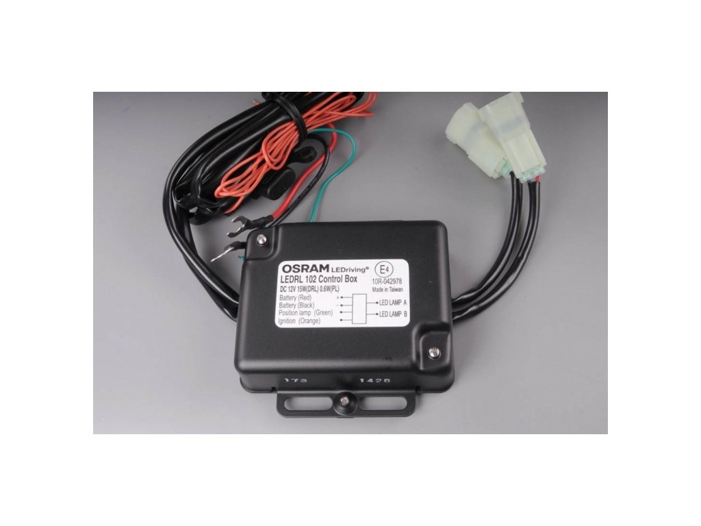 *Ovládací modul se připojí na baterii vozidla a také na kladný kontakt zapalování (svorka 15) vozidla. Při aktivaci zapalování se ihned rozsvítí světla pro denní svícení. Jakmile se vozidlo vypne, vypnou se světla pro denní svícení.Místo montáže svorky 15 / kladný kontakt zapalování se liší podle typu vozidla. Další informace k poloze svorky 15 zjistíte ve vašem autoservisu.