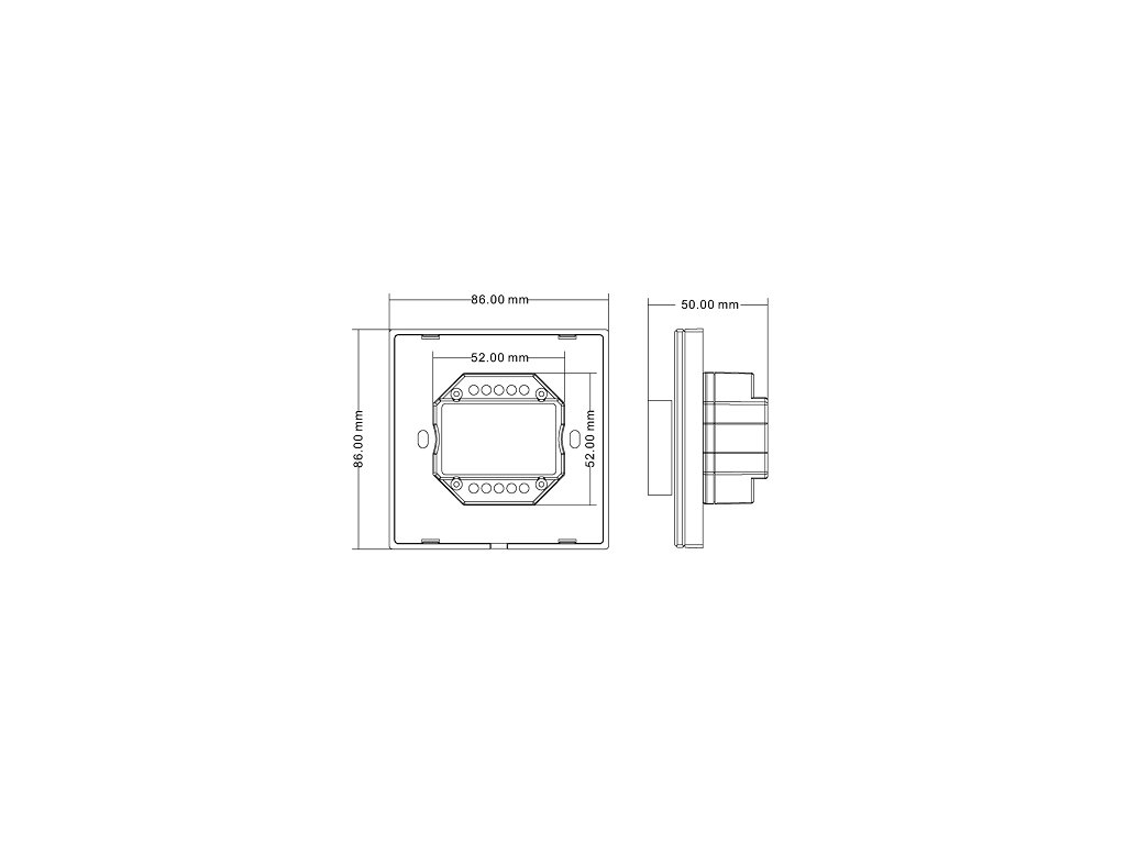 Rozměry 86 x 86 x 50 mm (ze namontovat do standartní EU krabice)