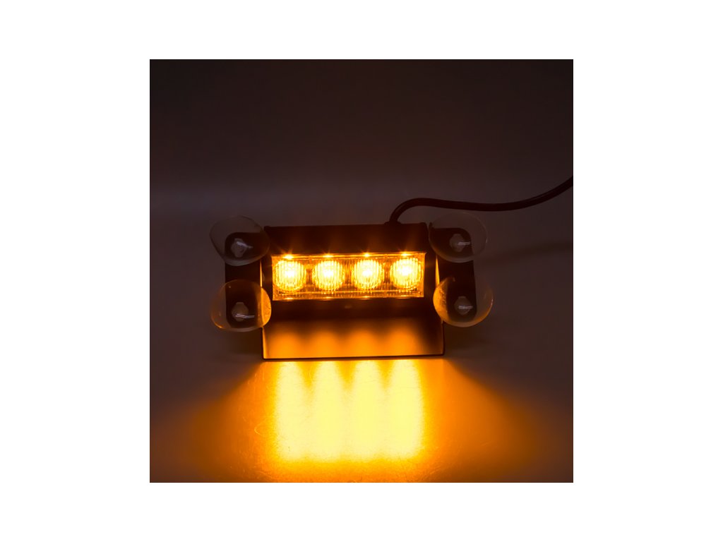 Přídavné oranžové výstražné LED světlo pro vnitřní montáž.Technické parametry: • 4x LED 3W • 26 režimů problikávání • minimální odběr proudu • možnost pevné montáže nebo pomocí přísavky na sklo • napájecí kabel s CL zástrčkou • napájecí napětí 12-24 V • šířka 146 mm • rozměry 146 x 55 x 100 mm