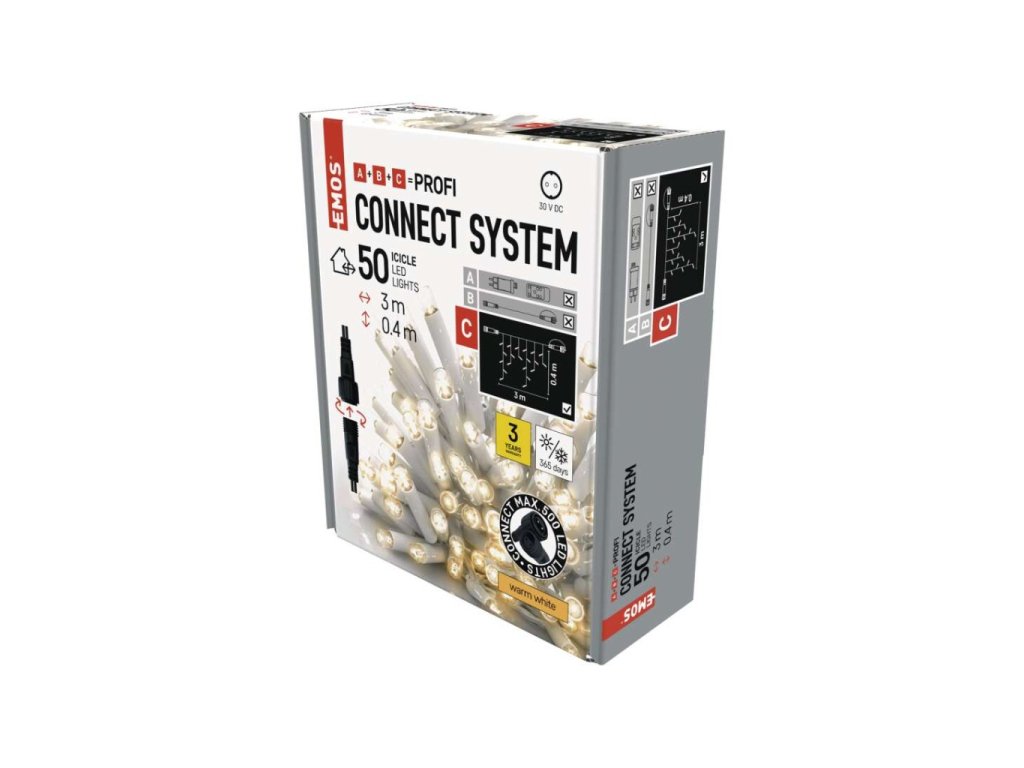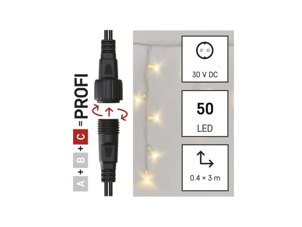 Profi LED spojovací řetěz bílý – rampouchy, 3 m, venkovní, teplá bílá, časovač