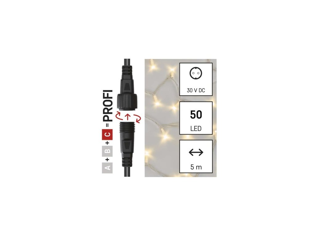 Profi LED spojovací řetěz bílý, 5 m, venkovní i vnitřní, teplá bílá, časovač