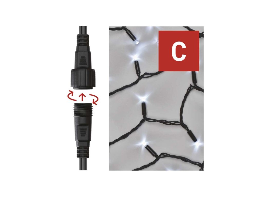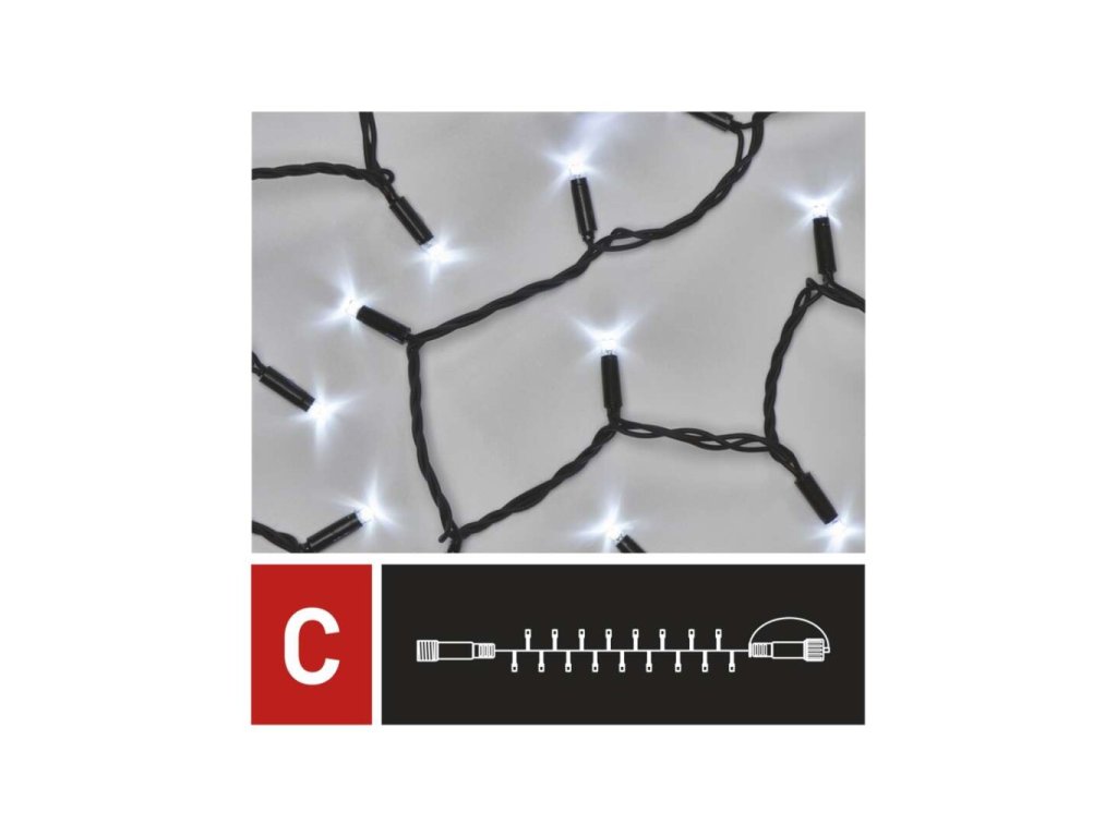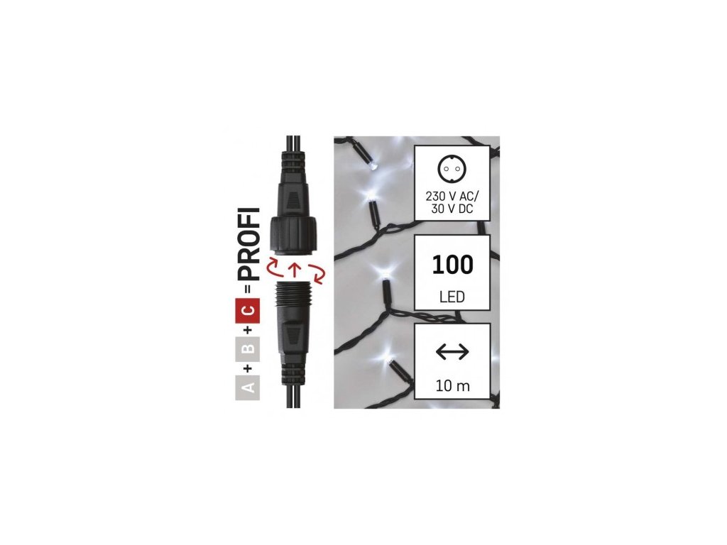 Profi LED spojovací řetěz černý, 10 m, venkovní i vnitřní, studená bílá, časovač
