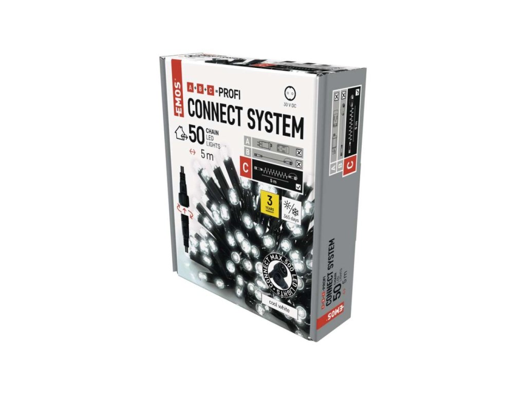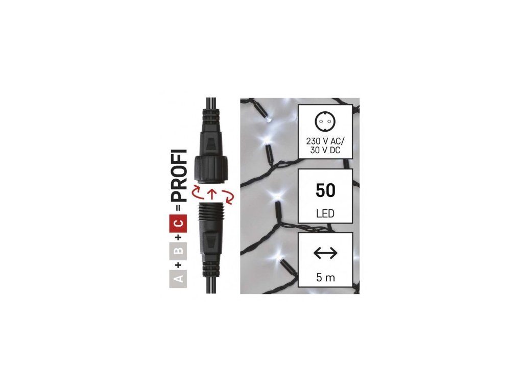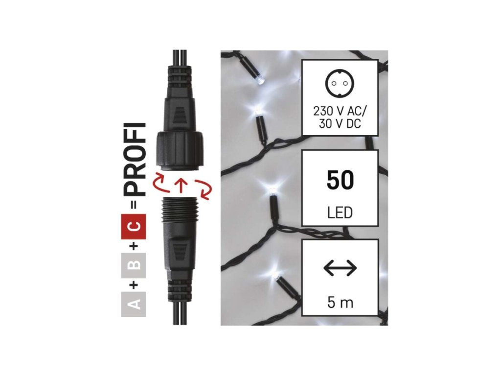 Profi LED spojovací řetěz černý, 5 m, venkovní i vnitřní, studená bílá, časovač