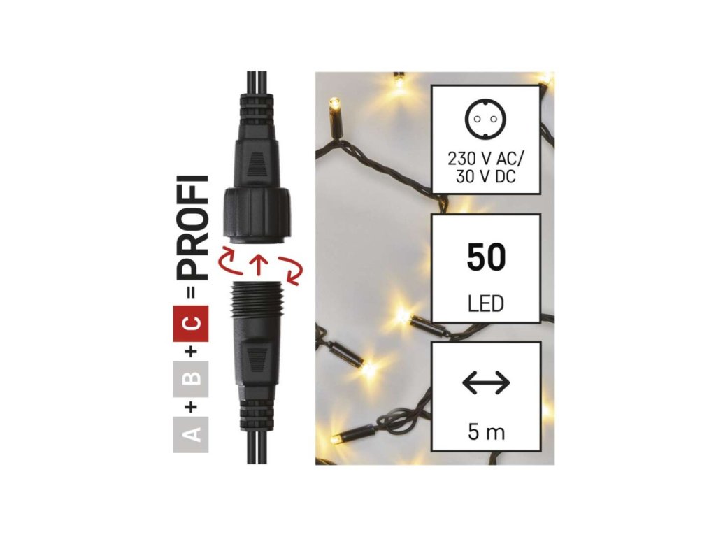 Profi LED spojovací řetěz černý, 5 m, venkovní i vnitřní, teplá bílá, časovač