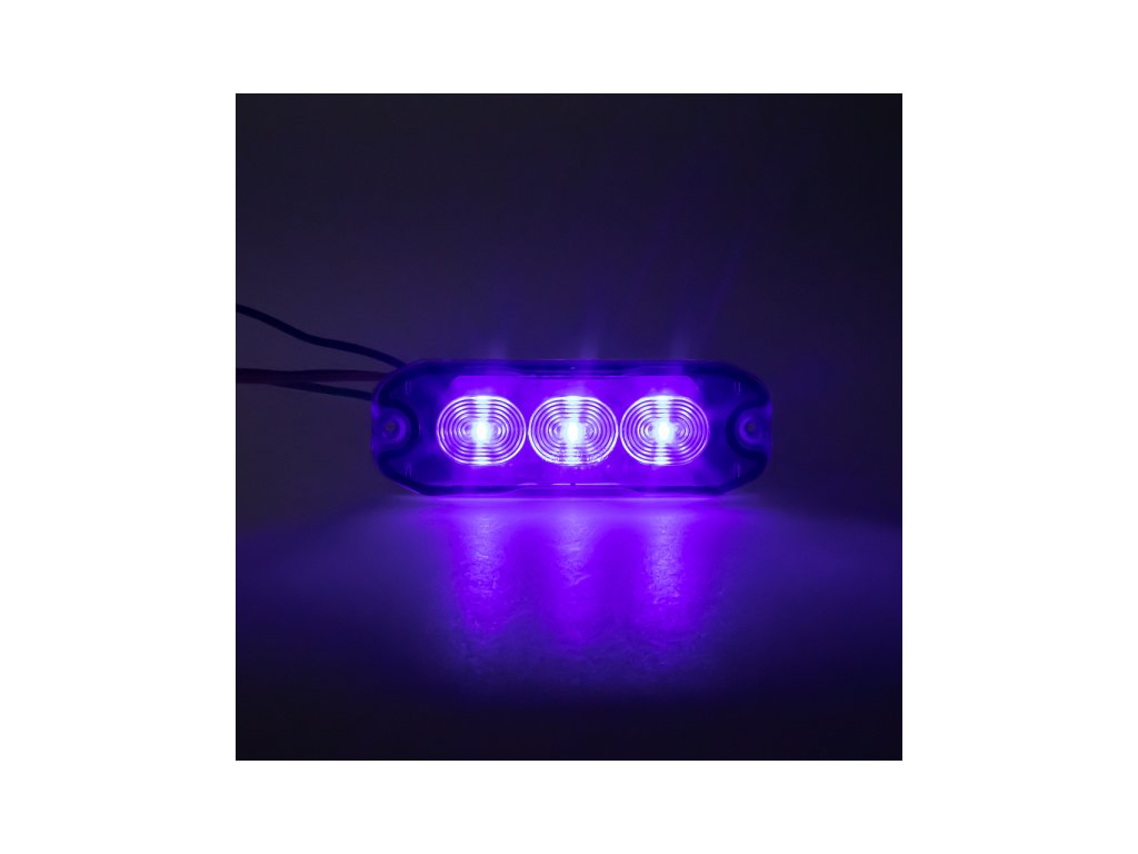 Přídavné modré extra tenké výstražné LED světlo pro externí povrchovou montáž.Technické parametry: • homologace ECE R65, R10 • 3x vysoce výkonné LED diody 3535 • minimální odběr proudu • 4 různé přednastavené programy pro blikání • synchronizace/střídání s dalšími LED světly stejného typu • odolná konstrukce chránící proti vlhkosti a otřesům • vodotěsné IP67 • rozměry 88 x 30 x 7 mm • montáž pomocí šroubů nebo přilepením • rozteč montážních otvorů 80 mm • napájecí napětí 12