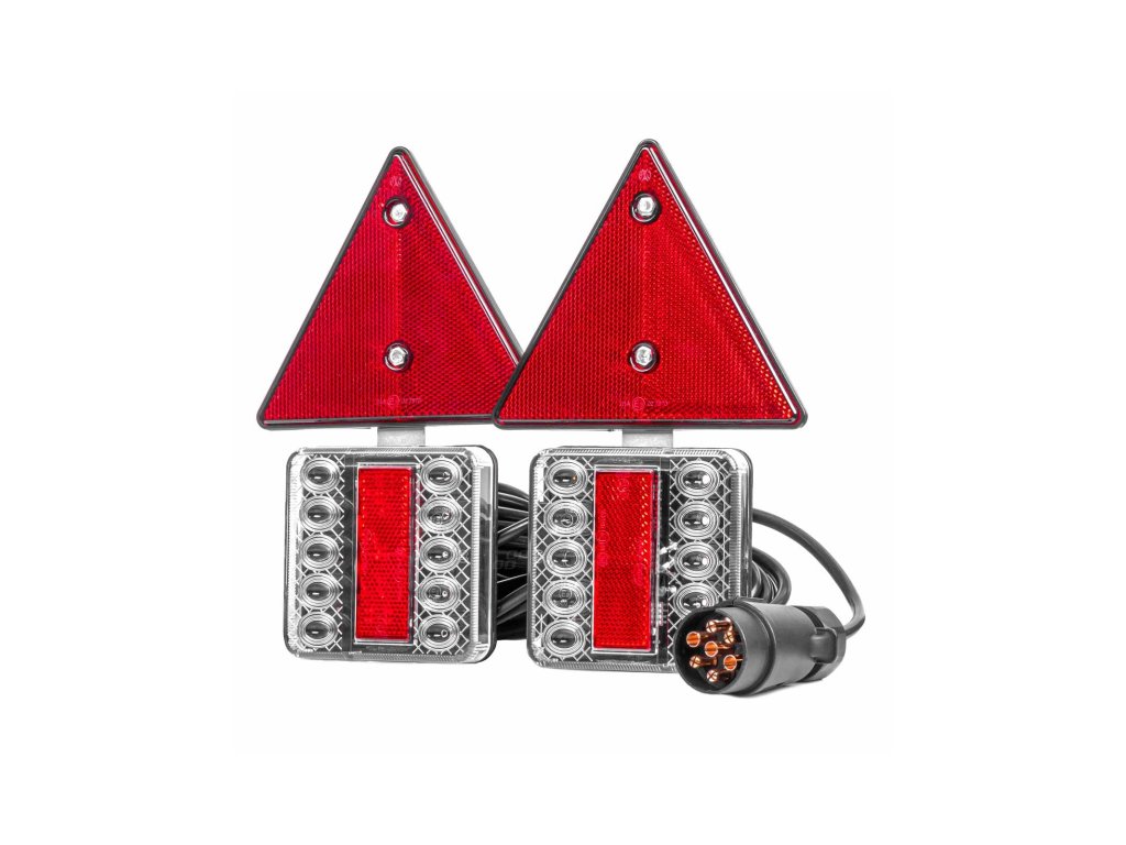 Sada LED sdružených světel s trojúhelníkovými odrazkami vybavená silnými magnety pro snadnou montáž a demontáž.