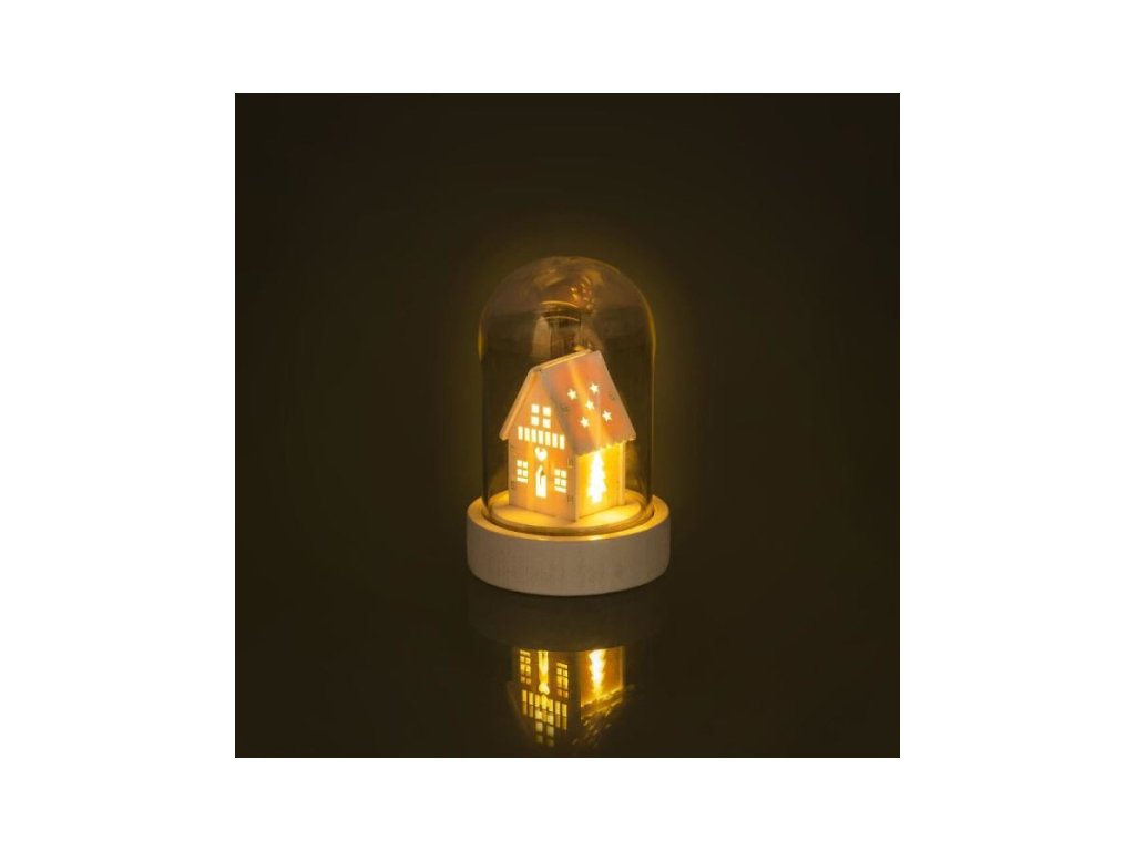 Skleněná kopule s dekorem domečku RXL 319 1 LED RETLUXVánoční skleněná kopulka s dřevěným dekorem