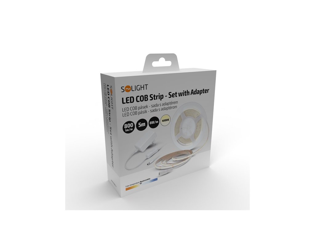 LED COB pásek, sada s adaptérem, vypínač, 5m, 8W/m, 800lm/m, neutrální bílá