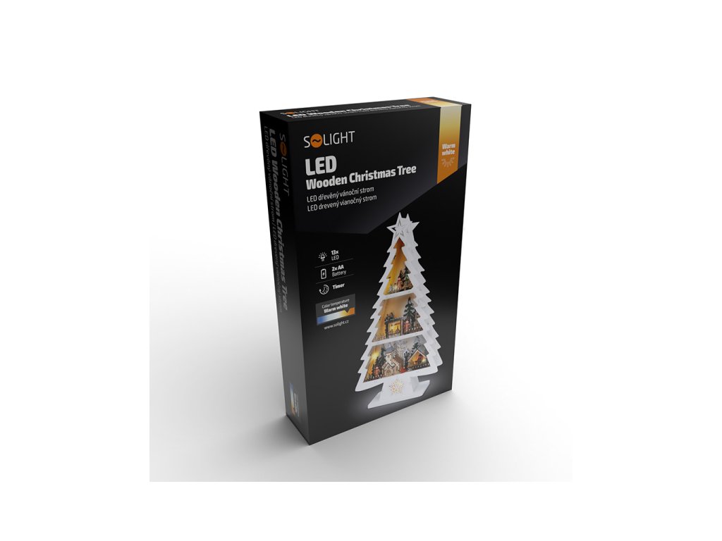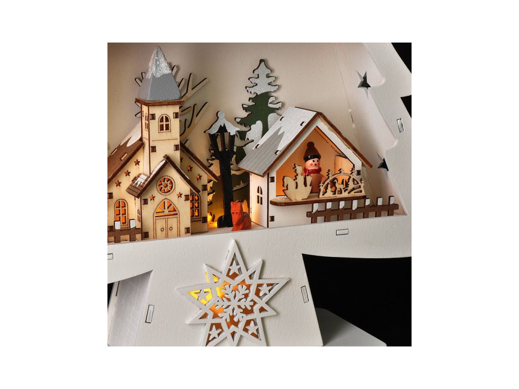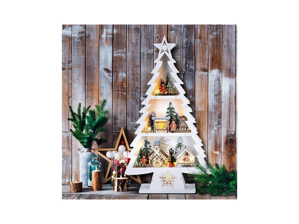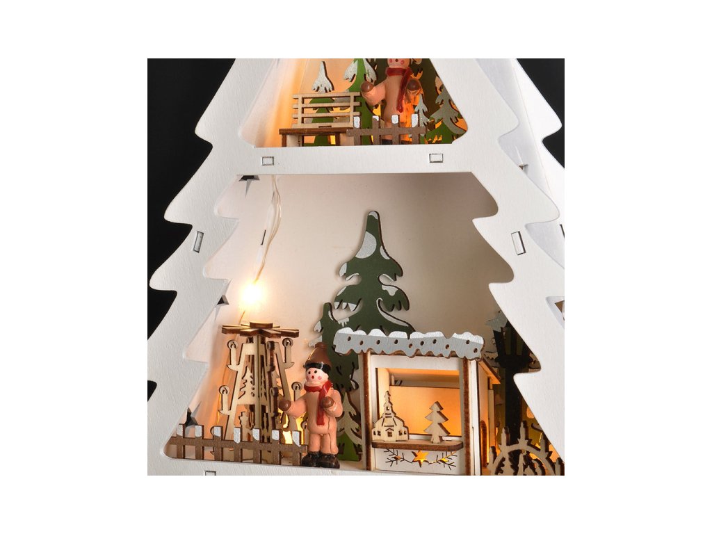 dřevěný váčnoční stromekek s dekoracemi a LED osvětlenímpočet LED diod: 13