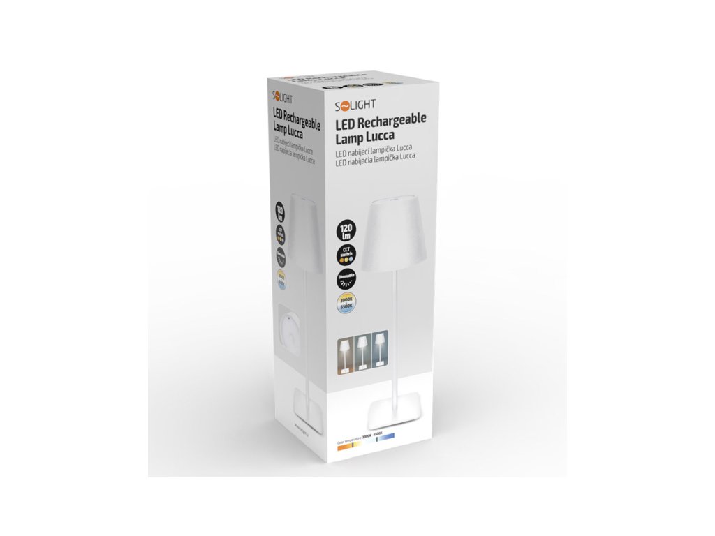 LED nabíjecí lampička Lucca, 120lm, změna CCT, stmívání, bílá