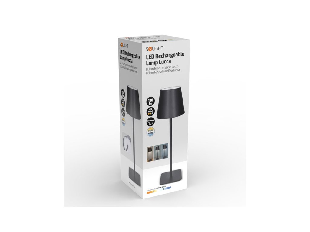 LED nabíjecí lampička Lucca, 120lm, změna CCT, stmívání, černá