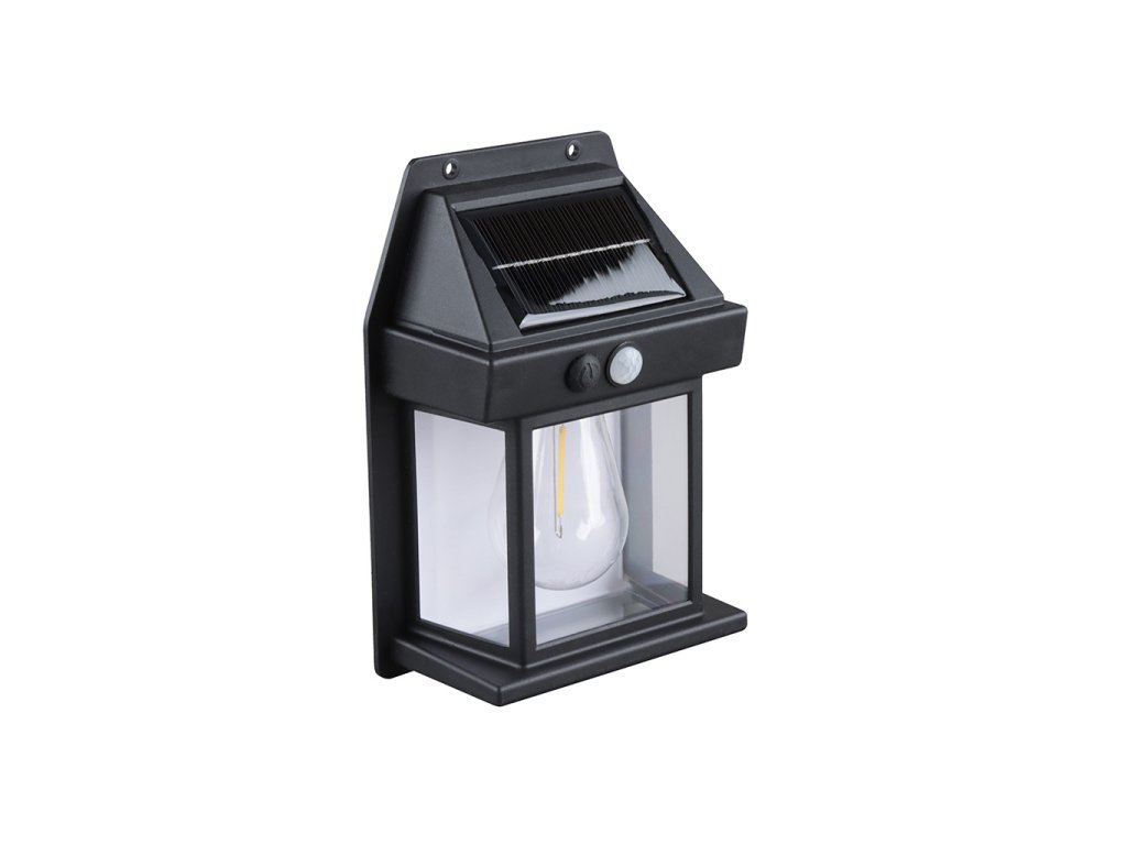Tato LED solární lucerna je ideální pro orientační i dekorativní nasvětlení stěn či fasád. Vestavěná žárovka s teplým bílým světlem (3000K) nabízí příjemnou atmosféru a 3 režimy svícení (100 %, 50 %, 30 %), které lze přizpůsobit vašim potřebám. Díky světelnému senzoru se lucerna automaticky rozsvítí při setmění, pokud je dostatečně nabitá. Napájení zajišťuje solární panel, který dobíjí Li-Ion baterii (3,7V 1200mAh) za přibližně 9 hodin na slunečním světle. Při plném nabití poskytne lucerna až 7 hodin nepřetržitého svícení. Podmínky pro automatickou aktivaci senzoru jsou nižší než 10 luxů, což zajišťuje spolehlivé zapnutí za šera či tmy. Díky krytí IP44 je lucerna odolná vůči stříkající vodě, což ji činí ideální volbou pro venkovní použití. Kompaktní rozměry 117 x 57 x 167 mm a elegantní černý design dodávají osvětlení moderní vzhled, který dokonale doplní váš exteriér. Pořiďte si toto praktické a stylové osvětlení, které zajišťuje úsporu energie a jednoduchou instalaci bez přívodu elektřiny!LED venkovní solární nástěnná lucerna s vestavnou žárovkou