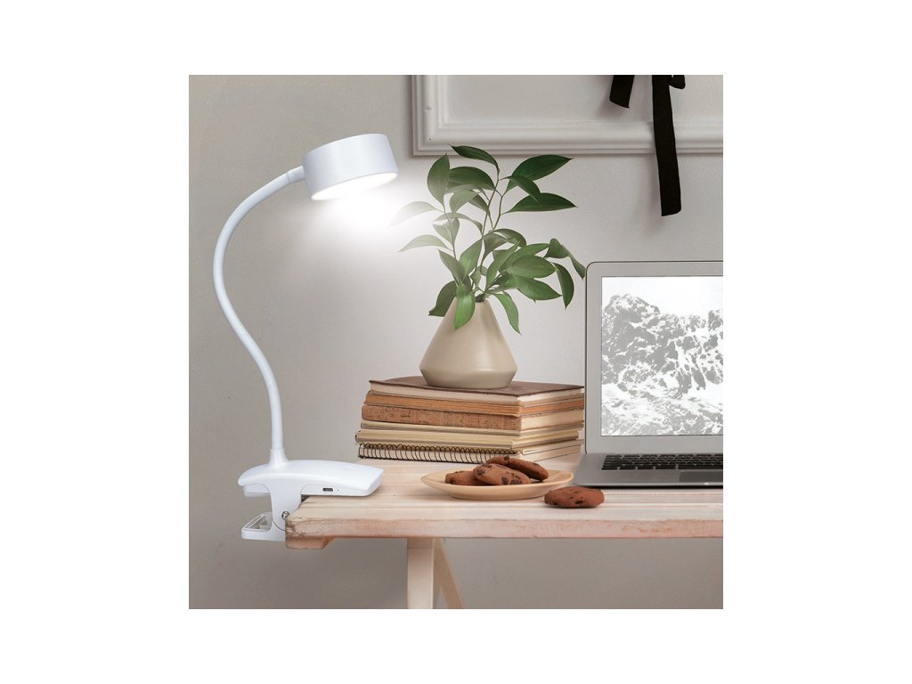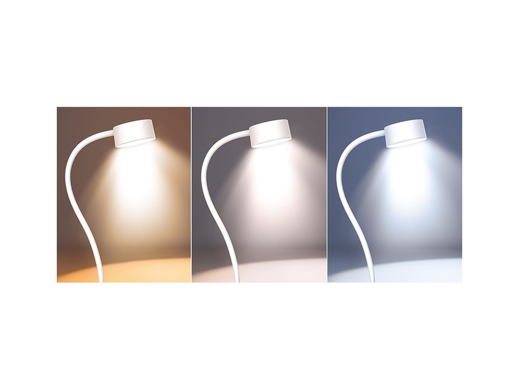 LED stolní nabíjecí lampička, 2W, 210lm, 3CCT, bílá, clip