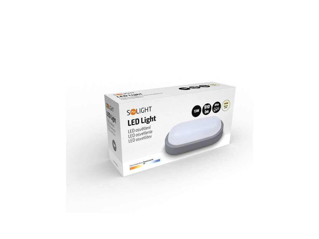 LED venkovní osvětlení oválné, 13W, 910lm, 4000K, IP54, 21cm, šedá barva