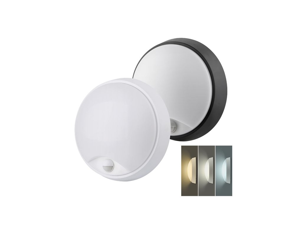LED venkovní osvětlení se senzorem, 3 CCT, 15/18/20W, 1800lm, 22cm, 2v1 - bílý a černý kryt