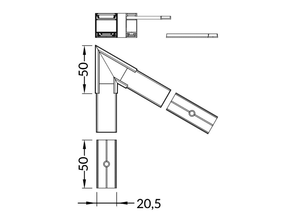 Spojka 60° černá hliník,polykarbonát LINEA20