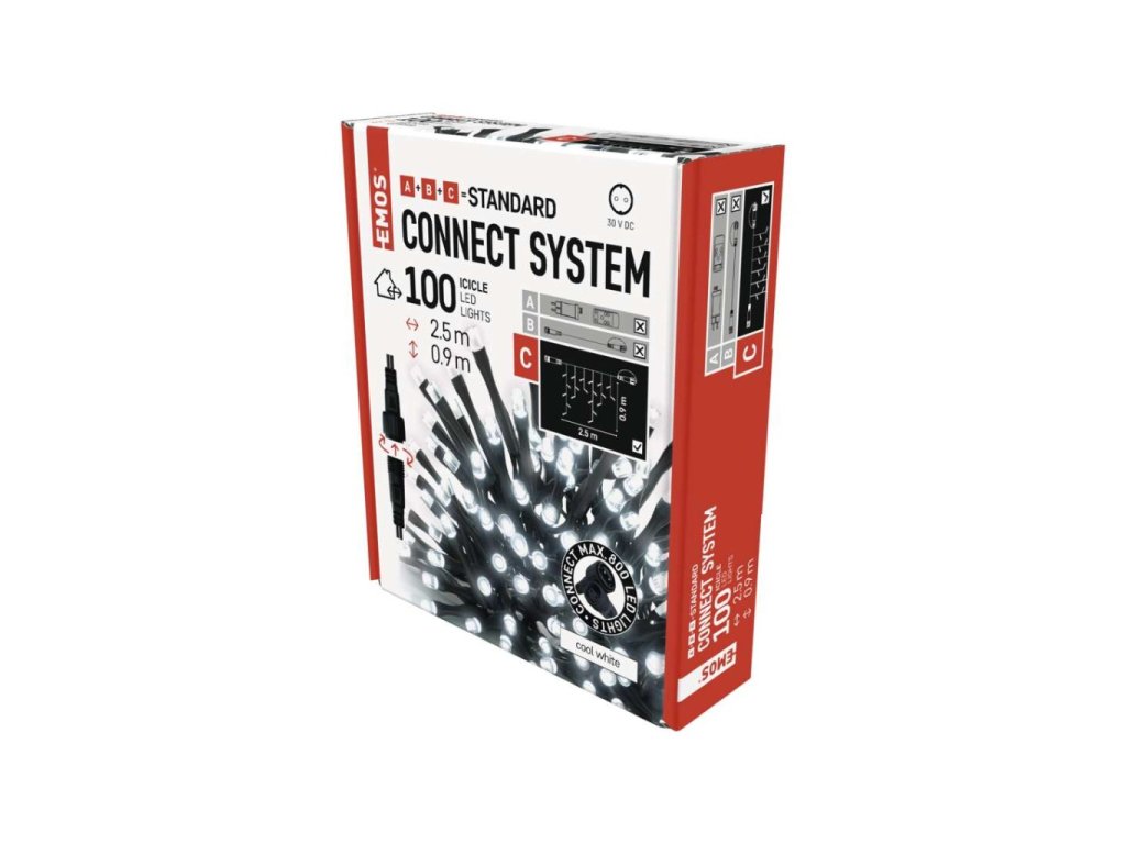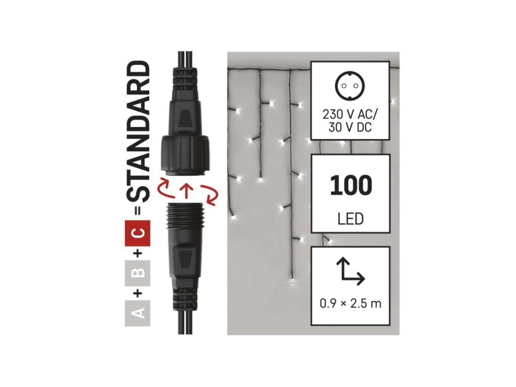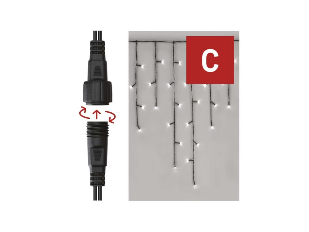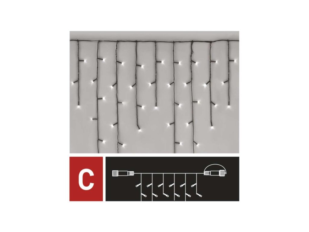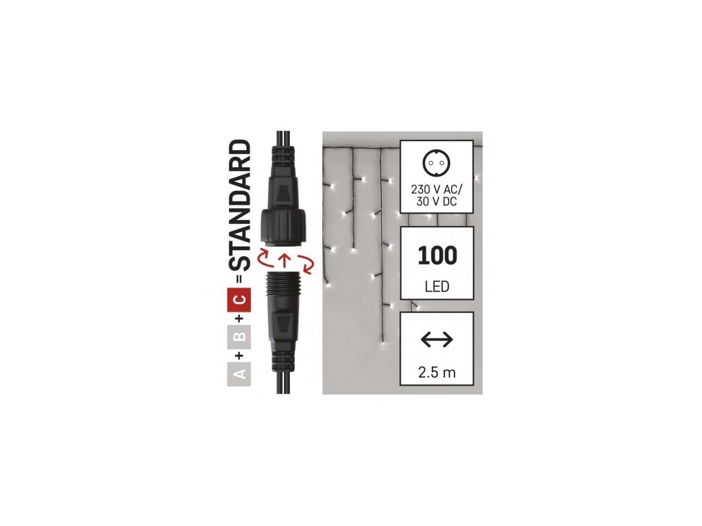 Standard LED spojovací vánoční řetěz – rampouchy, 2,5 m, venkovní, studená bílá, časovač