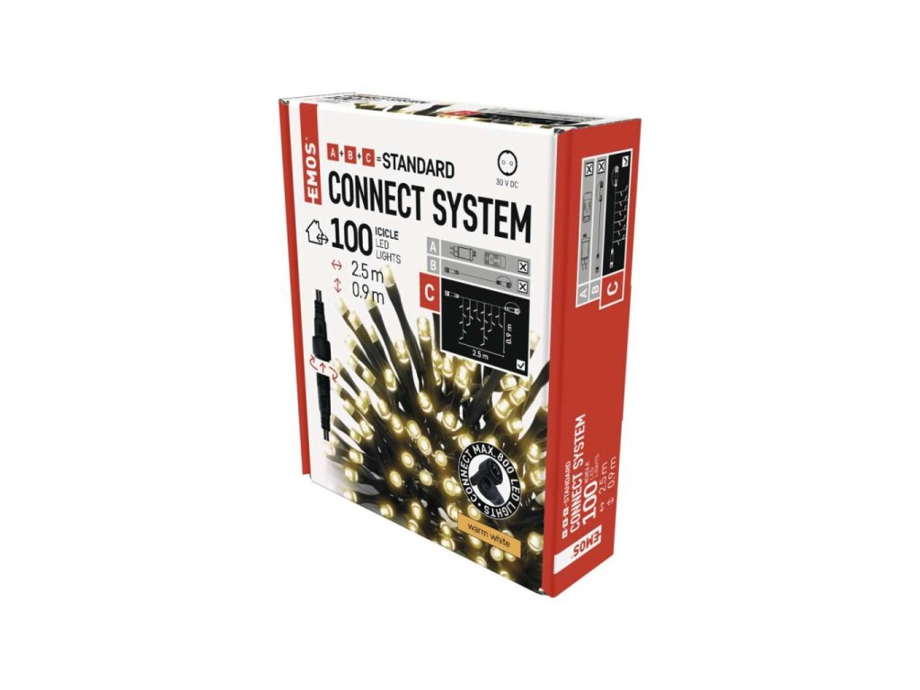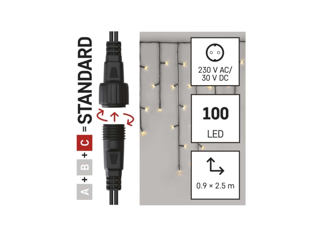 Standard LED spojovací vánoční řetěz – rampouchy, 2,5 m, venkovní, teplá bílá, časovač