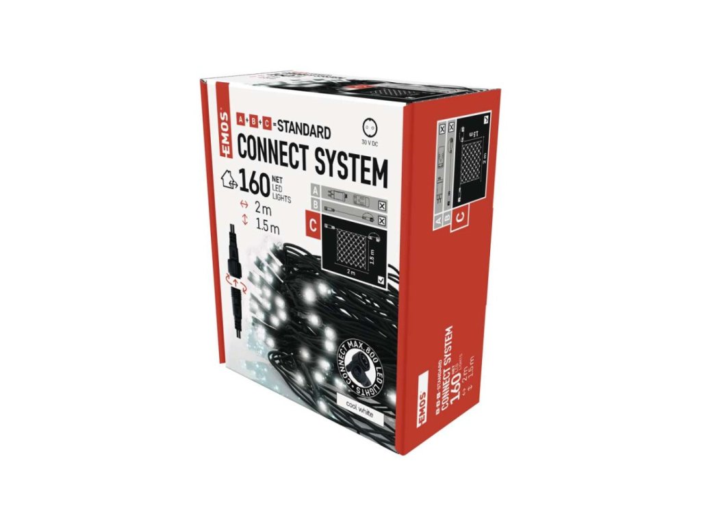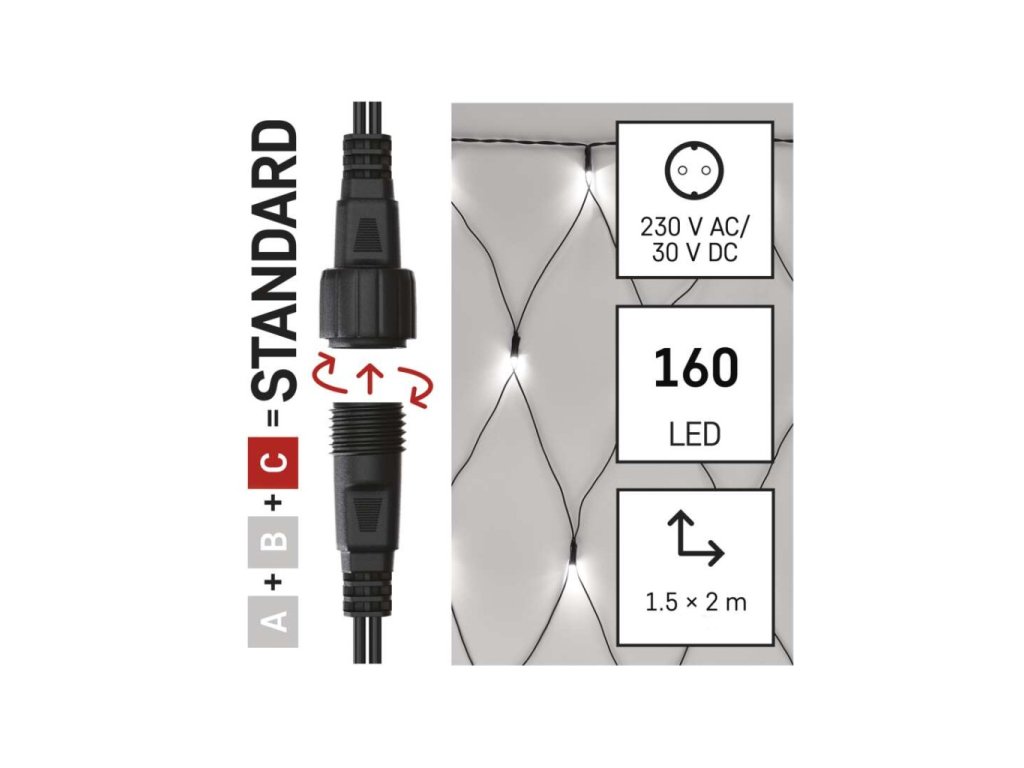 Standard LED spojovací vánoční řetěz – síť, 1,5x2 m, venkovní, studená bílá, časovač