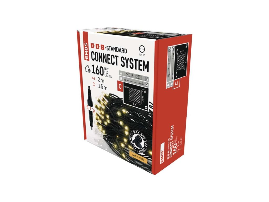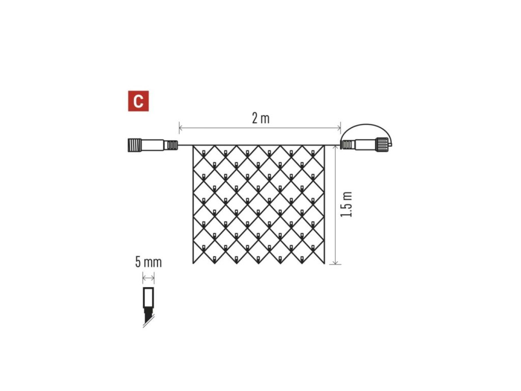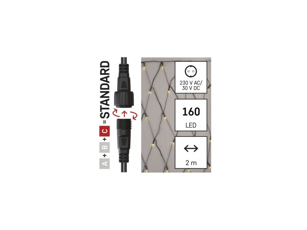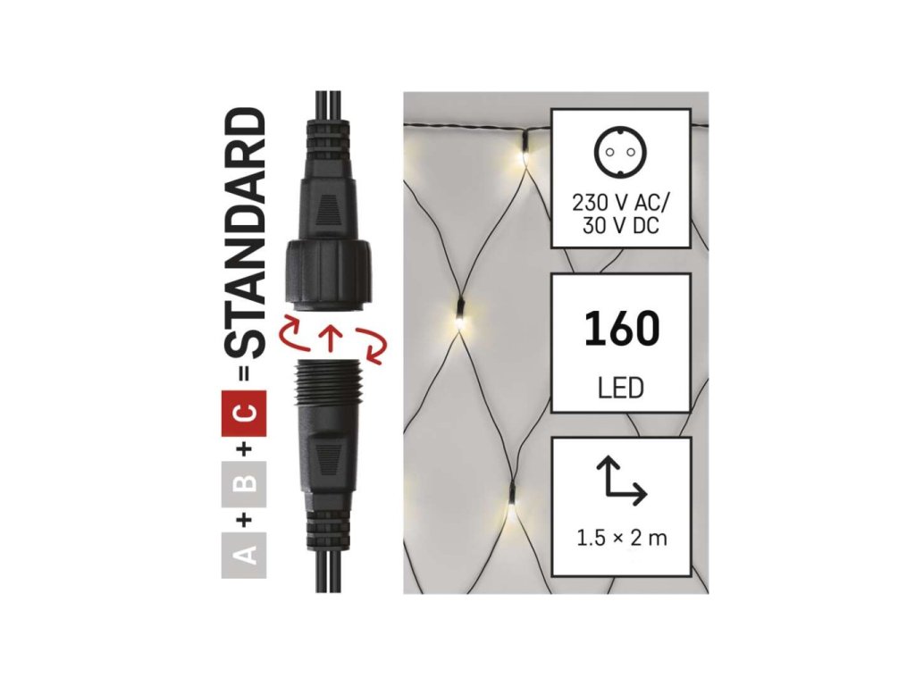 Standard LED spojovací vánoční řetěz – síť, 1,5x2 m, venkovní, teplá bílá, časovač