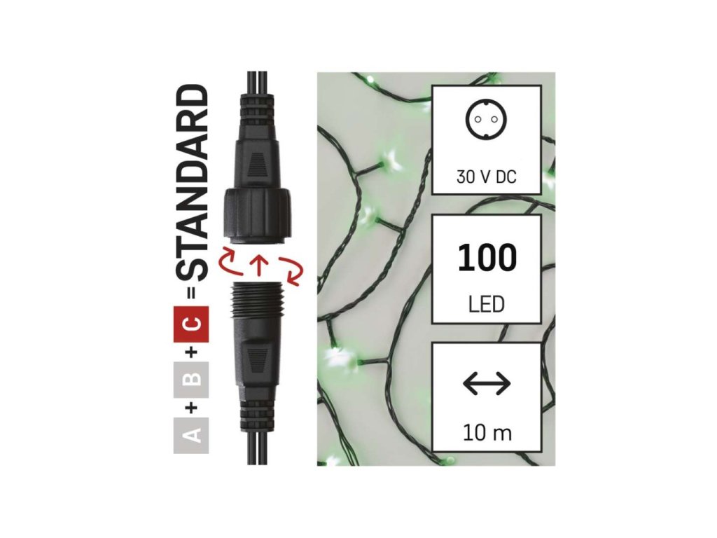 Standard LED spojovací vánoční řetěz, 10 m, venkovní i vnitřní, zelená, časovač