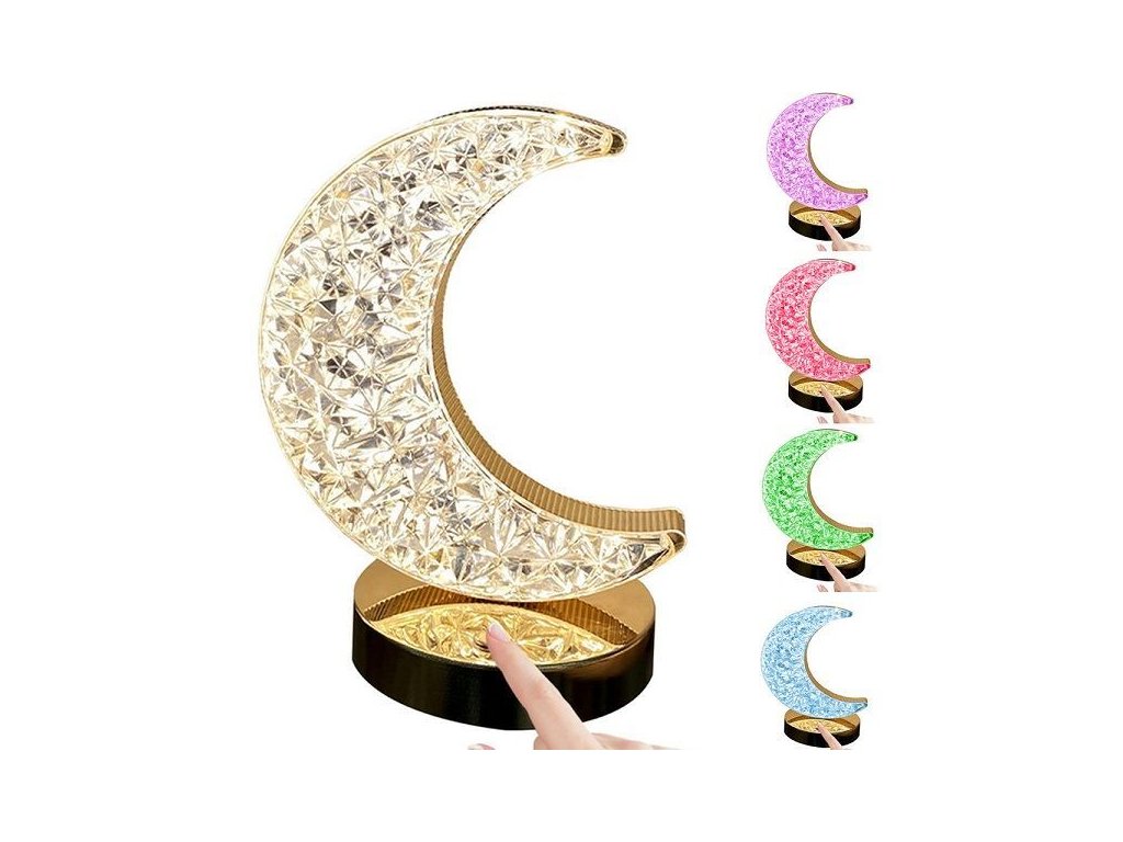 Stolní noční lampa krystal led rgb, měsícOkouzlující noční lampa ve tvaru měsíce s imitací krystalu RGB je dokonalým způsobem, jak vytvořit kouzelnou atmosféru u vás doma. Nejen, že osvětlí váš pokoj jemným, příjemným světlem, ale také vám umožní přizpůsobit si barvu osvětlení vaší náladě.