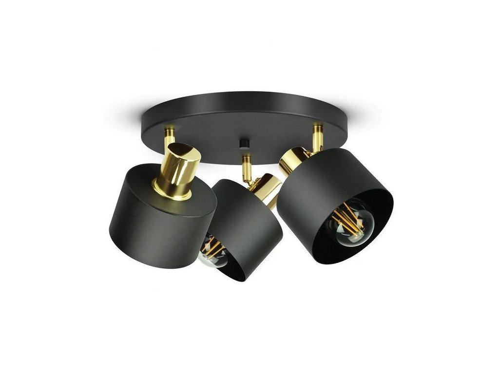 Stropní svítidlo bodová lampa, pro 3 žárovky E27Pohodlné a praktické použití – stínidla lze umístit libovolným směrem.<BR/>Leštěné zlato na černé struktuře vytváří zajímavý vizuální efekt.<BR/>Funguje s jedním nebo dvěma tlačítky.<BR/>Lampa se vyznačuje vysokou kvalitou a odolností – je vyrobena z 95 % kovu.<BR/>Rychlé a snadné vyjmutí stínidel usnadňuje čištění lampy nebo výměnu žárovky.<BR/><BR/>Konstrukční materiál: Práškově lakovaný kov<BR/>Napájecí napětí: 230V<BR/>Typ světelného zdroje: 3 x žárovka E27 (není součástí balení)<BR/>Rozměry lampy: 16 x 36 x 36 cm<BR/>Rozměry jednoho stínidla: 12 x 7 cm