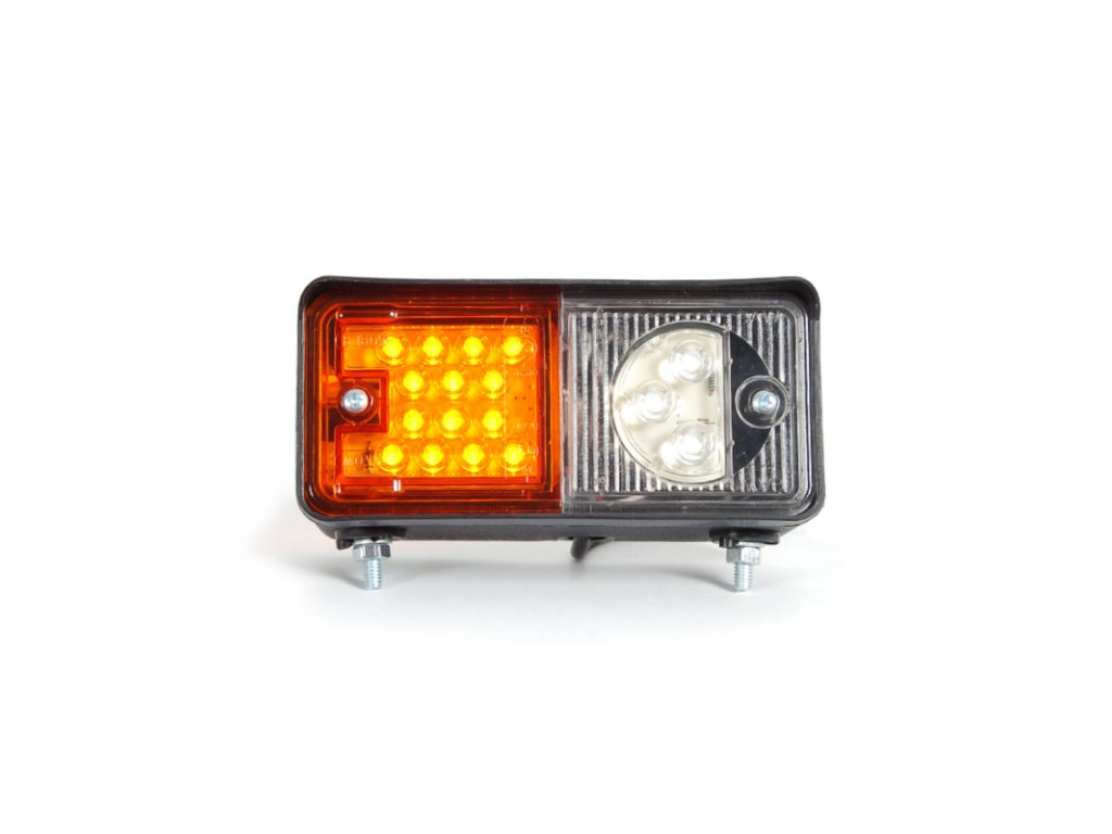 LED světlo určené pro napětí 12 i 24V. Funkce předního obrysového a směrového světla (včetně směrového světla na zadní straně).Zapojení elektroinstalace:Barva vodiče – funkcebílá - (-) mínus, kostračerná - obrysové světložlutá – směrové světloRozměr (mm): 150 x 70,3 x 77