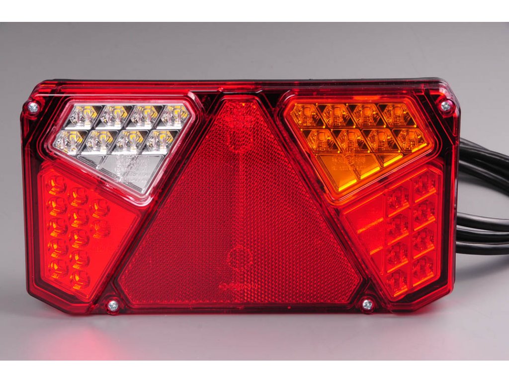 svítilna s integrovanou odrazkou - trojúhelníkem, obsahuje svítilnu: koncovou, směrovou, brzdovou, couvací a mlhovoumontážní strana pravá