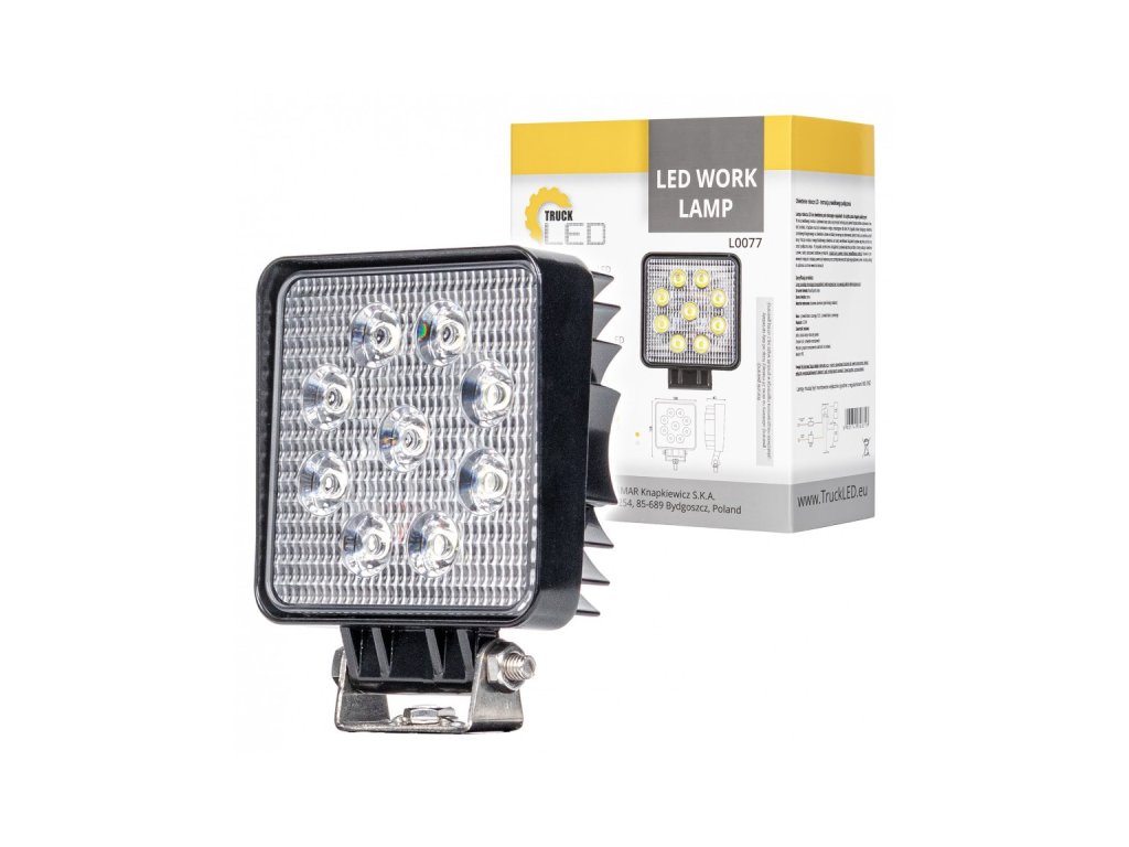 Světlomet LED pracovní čtvercový 12-24V 9x LED