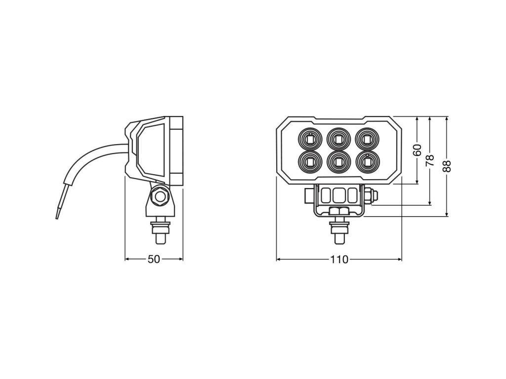 Výkonná LED pracovní světla Zažijte výjimečnou viditelnost s OSRAM LEDriving Rect WL VX100-WD – kompaktním, výkonným pracovním LED světlometem s širokým paprskem, který kombinuje cenovou dostupnost s výkonem, kvalitou a odolností. Pracovní světlomet, navržený pro splnění rozmanitých úkolů, zaujme světelným tokem až 2300 efektivních lumenů a širokým vyzařovacím profilem s dosvitem až 68 metrů. S chladně bílým světlem, až 6000 Kelvinů, a vybavený 6 vysoce výkonnými LED diodami OSRAM poskytuje pracovní světlomet konzistentní a spolehlivý jas, čímž výrazně zvyšuje bezpečnost při práci pro vás i ostatní. Pracovní světlomet je vyroben pro dlouhou životnost a má robustní hliníkové pouzdro a nerozbitnou polykarbonátovou čočku. Odolává náročným podmínkám prostředí, jako je prach, voda, nárazy, extrémní teploty a vibrace, a splňuje normy IP6K8 a IP6K9K ověřené v certifikované laboratoři pro simulaci prostředí. Tento pracovní LED světlomet je všestranně použitelný a je efektivním doplňkem pro nákladní automobily, stavební stroje, zemědělská a užitková vozidla i terénní vozidla. Kromě toho je schválen dle normy ECE R148 pro použití jako couvací světlo. Ať už na farmě, na staveništi nebo v divočině, OSRAM LEDriving Rect WL VX100-WD je spolehlivé a efektivní řešení osvětlení, které zvyšuje výkon a bezpečnost v náročných podmínkách Vlastnosti— WIDE BEAM = široký vyzařovací úhel pro velkoplošné a široké rozložení