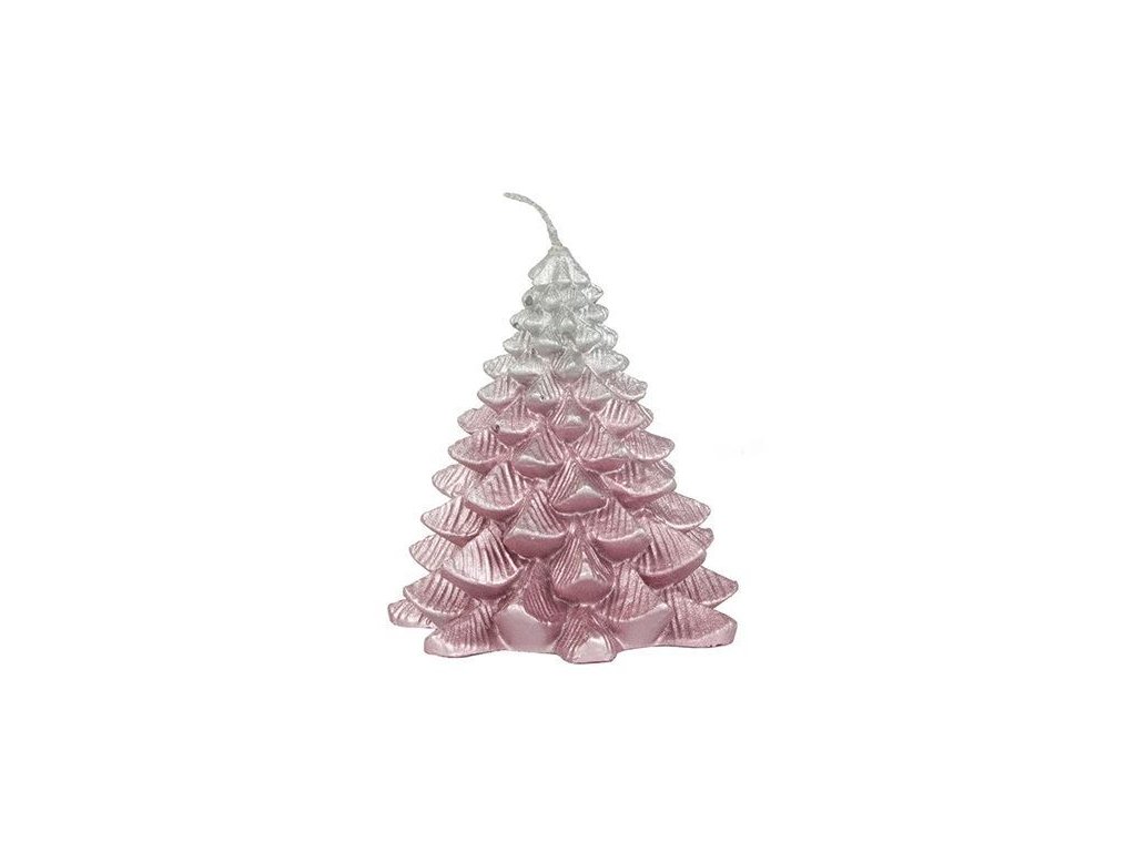 Vánoční svíčka stromeček, stříbrno růžováTECHNICKÉ SPECIFIKACE:<BR/>Září teplým světlem<BR/>Doba hoření: až 6 hodin<BR/>Téma: Vánoční stromeček<BR/>Balení: bílá krabička<BR/><BR/><BR/><BR/>ROZMĚRY:<BR/>Výška: 8 cm<BR/>Průměr: 8 cm