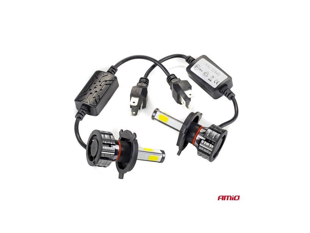 Žárovka LED COB H4 6500K 12-24V AMIOŽárovky světlometů COB 4Side se vyznačují velmi kvalitním zpracováním. Speciálně navržený chladič v kombinaci s aktivním chlazením zajišťuje, že žárovky fungují v souladu se svými specifikacemi a nepřehřívají se.<BR/><BR/>LED TECHNOLOGIE<BR/><BR/>Světelné zdroje využívající technologii COB jsou při přeměně elektrické energie na viditelné světlo účinnější než tradiční halogenové žárovky. Vyznačují se zvýšenouenergetickou účinností a sníženým generováním tepla.<BR/><BR/>AKTIVNÍ CHLAZENÍ<BR/><BR/>Každá žárovka je vybavena aktivním chladicím systémem, který se skládá z ventilátoru. To umožňuje efektivní odvod tepla z chladiče, a tím rychlejší odvod tepla generovaného COB diodami. Toto řešení zabraňuje přehřívání diod, což pozitivně ovlivňuje jejich životnost.<BR/><BR/>Řada COB 4Side vyniká atraktivní cenou, aktivním chladicím systémem, kompaktními rozměry a výjimečnou spolehlivostí. Instalace sady je stejně jednoduchá jako výměna standardní halogenové žárovky, což eliminuje časově náročné úpravy stávající kabeláže a riskantní přepracování.<BR/><BR/> <BR/><BR/>TECHNICKÉ PARAMETRY:<BR/><BR/>Model: H4 COB 4Side<BR/>Bílá barva: 6500K<BR/>Diody (sada): 4 x COB<BR/>Napětí: 12/24V<BR/>Světelný tok: 3800 lm<BR/>Spotřeba energie: 38 W<BR/>Spotřeba proudu: ~1700mA (12V)<BR/>Pouzdro: Hliníková slitina 6063<BR/>Chlazení: Aktivní - ventilátor<BR/>Provozní teplota: -40 °C až +50 °C<BR/>CANBUS: Ne<BR/>Rušení: Neruší rádio<BR/>Homologace: R10<BR/>Délka žárovky: 75 mm