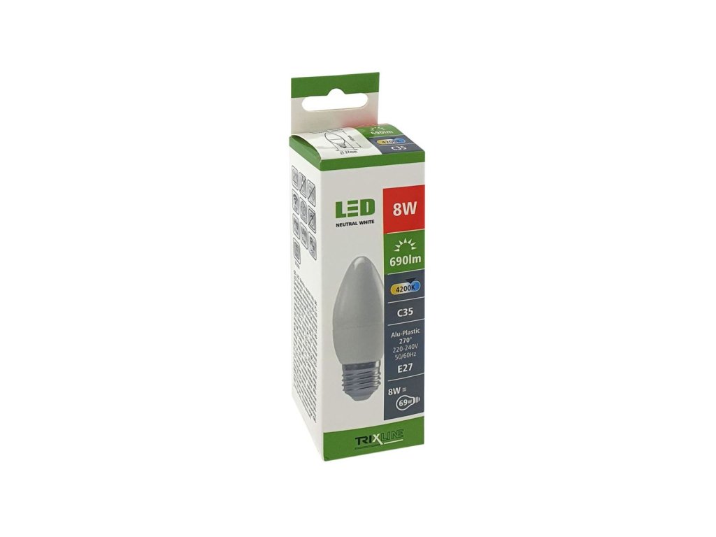 Žárovka LED E27 8W E27 C35 neutrální bílá TRIXLINE